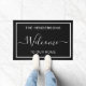Bienvenido a su familia y amigos a su puerta con este elegante felpudo negro decorado con una tipografía de escritura elegante. Personalizable fácil.