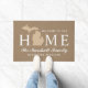 El elegante doormat "Welcome to our home" presenta un diseño de tipografía con un mapa del estado de Michigan. Personalice con el monograma de apellido de su familia y el nombre de su ciudad. Incluye una capa de fondo de arpillera con un aspecto rústico texturizado. Templo neutro, beige y blanco.