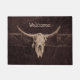 Toro de cráneo campo de vaquero occidental viejo textura grunge bienvenida doormat. Casa de campo de estilo rústico de inspiración marrón vintage. Arte rústico al estilo antiguo del oeste. Guay, moderno diseño de animales de granja. Derechos de imagen de Marg Seregelyi Photography.