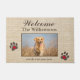 Este divertido Personalizado, Welcome Doormat, estrellas de su perro, y le pide suavemente que sus invitados también limpien sus "patas" antes de entrar a su hermosa casa. Cálido e invitante, para usted o como regalo. Interesante fuente de caligrafía — fácil de personalizar. Cualquier pregunta de diseño, debe enviar un chat o un correo electrónico a charmdesignstudio@rcn.com y estaremos encantados de asistirle.