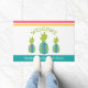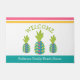"Bienvenidos". Trae un poco de hospitalidad de las islas tropicales a su casa de playa con este moderno felpudo de moda. 3 modernas, gráficas, azul turquesa verde azulado, verde, piñas rosadas y naranjas, rayas rosas y naranjas, tipografía manuscrita verde primavera, junto con el nombre/mensaje familiar en una banda azul turquesa, superponen un fondo blanco. Añade un toque divertido y festivo a tu puerta principal. Simplemente teclee su información con las plantillas fáciles de usar, y puede personalizar fácilmente este formulario de bienvenida. Por favor, envíame cualquier pregunta o petición.