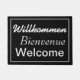 Reciba a sus huéspedes con una puerta multilingüe que incluye las palabras alemana, francesa e inglesa "Welcome". Mostrado aquí en negro con texto en blanco, este diseño también está disponible en rojo y azul claro.