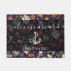Elegante bienvenida personalizada a bordo de la alfombra, con el nombre de su barco o capitán, en un clásico texto blanco sobre un fondo marino. Diseñado por Thisisnotme©
