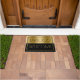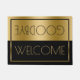 Felpudo Bienvenido Adiós oro y diseño geométrico negro