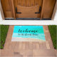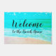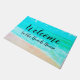 Una alfombra de bienvenida personalizado con una foto de una bonita playa de agua turquesa con las palabras Bienvenidos a la Beach House de color negro, por lo que destaca. Perfecto para su casa de playa o alquiler,