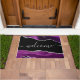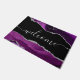 Saluda a tus huéspedes con estilo con este doormat de purpurina agate, morado, negro y plateado personalizado de la moda, que presenta el saludo "bienvenido" en caligrafía moderna de escritura falsa de plata con letras a mano. Hace un elegante regalo de bienvenida para ese amigo especial en tu vida.
