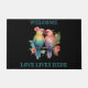 Encantadora alfombra de bienvenida que dice "Bienvenida, amor vive aquí". Qué saludo tan agradable para los amigos, la familia y los invitados.