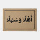 Único moderno bienvenido en árabe divertido negro ahla wa sahla tipografía en un fondo de patrón de alfombra marrón claro. Agradable para ti o como regalo para alguien que dice ahla wa sahla mucho y le encantaría una alfombra de puerta árabe divertida.