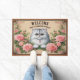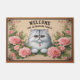 Felpudo Bienvenido floral al gato persa personalizado