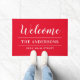 Bienvenido Doormat de nombre familiar personalizado en blanco y negro