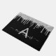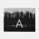 Un fondo negro de moda con un falso goteo de purpurina plateado, pinta goteo. Personalice y añada su apellido y letra de monograma, inicial. Letras de color blanco y gris. El nombre está escrito con una escritura a mano a la moda, con letras y toques. Para que los cambios sólo eliminen el nombre del ejemplo, deje los espacios o la emoji delante y después del nombre.