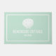 Bienvenido a los visitantes con este moderno diseño de conchas de vacaciones alquiler de la alfombra doormat con tipografía moderna en blanco sobre un fondo verde menta. Añada su nombre personalizado de alquiler de vacaciones a este elegante hotel, perfecto para alquilar una casa de playa, alquilar una casa de lago o un airbnb.