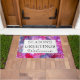Doormat, El GREETINGS De La Época Elegante. Este es un FESTIVE WREATH Doormat que muestra el fondo de la corona de baubles festivos y de mejillones. El texto dice "GREETINGS and WELCOME" de SEASON, que son PERSONALIZABLES para que usted pueda modificar la redacción para adaptarla a sus necesidades, por ejemplo, añadir apellido, lema familiar o cita inspiradora. Otras versiones de BIENVENIDA están disponibles en la colección WELCOME TO OUR HOME de Berean Designs.