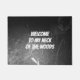 Esta alfombra de bienvenida tiene una foto de una cámara de senderos de un dólar del sur de Illinois y las palabras Bienvenidos a mi cuello del bosque...