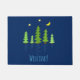 Este personalizable doormat cuenta con un ilustracion sencillo y moderno de un paisaje forestal de árboles majestuosos con estrellas y luna en el cielo de medianoche y olas de agua que se asemejan a un lago. Perfecto para su casa, casa de troncos de montaña o cabaña de lago. El color de fondo azul oscuro de este bonito y acogedor diseño se puede cambiar fácilmente por un color que se corresponde con la decoración de tu casa. Incluso puedes personalizar el texto "¡Bienvenido!" a tu propio mensaje o idioma.
