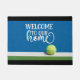 Bienvenidos a nuestro hogar Doormat con una pelota de tenis en la cancha