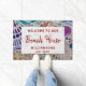 Bienvenidos a su casa de playa con este único felpudo. Presenta un mosaico de conchas único y una tipografía de marrón elegante. Personalizable fácil. Perfecto para una casa de playa, alquiler de vacaciones, cabaña de playa o un regalo de bienvenida. Utilice la opción Personalizar adicional para cambiar el tamaño, estilo o color del texto. Porque creamos nuestra obra de arte no encontrarás esta imagen exacta de otros diseñadores. Original Mosaico © Michele Davies.