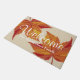 Elegante taupe y rojo otoño deja doormat de "bienvenida" con un nombre familiar personalizado en blanco.