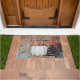 Naranja blanco calabaza otoño rústico de campo textura de fondo de la casa de campo bienvenida doormat interior al aire libre. Hermosa decoración casera de diseño de cino de pino de Acción de Gracias. Derechos de imagen de Marg Seregelyi Photography.