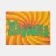 Los años 70 retro, hippie y trippy dan la bienvenida a un colorido estilo boho. La bienvenida está en verde en un tipo de letra vintage de los años 60 / 70 sobre un fondo de rayos solares psicodélicos agitados en naranja vívido y amarillo. ¡Haz una declaración audaz y colorida!