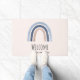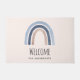 Bienvenido al Doormat con un arco iris tierno y caprichoso. Acuarelas azules y melocotones.