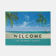 Almohadilla de bienvenida con temática tropical de playa para la decoración de tu casa de playa. Personalizar con apellido para añadir un toque personal.