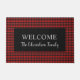 Patrón de cuadros de búfalo rojo moderno nombre de familia Bienvenidos en letra cursiva.