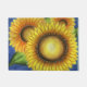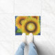 Flores de sol brillantes y alegres decoran este elegante felpudo. El diseño es de arte original.