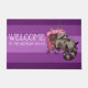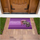 Bienvenido a sus invitados de cumpleaños con este felpudo, con un mapache con el estómago lleno, recostándose en los restos del pastel de cumpleaños de chocolate que ha estado comiendo. El texto editable dice "BIENVENIDOS A LA CASA DE CUMPLEAÑOS", cambie a su título preferido si lo desea. Para los aficionados a animales coquetos pero lindos, o un experto en hornear.