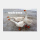 Foto de Zolotareva. Blanco ganso en la nieve blanca. Los geeses son graciosos. Puedes agregar nombre o texto personalizado. Personaliza esta plantilla.