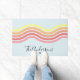 Saluda a los amigos y familiares a su casa con este vibrante y llamativo Blue Groovy Lines Beach Sunrise Doormat retro colorido, con líneas onduladas abstractas en una paleta de colores inspirada en un hermoso amanecer. Perfecto para una casa de playa, alquiler de vacaciones, cabaña junto al mar o un maravilloso regalo de bienvenida.