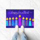 Felpudo Blue Happy Hanukkah Script Moderno Nombre de la Ve