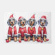 Rugged and musical Bluetick Coonhounds, known for their unique coloring and baying voice, look ready for the holidays in their festive Santa outfits. A great design for hound dog owners.
