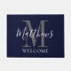 Felpudo Boda de Monograma Gris Azul de la Marina Moderna