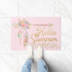 Festín floral de boho dorado y rosa brillante. Hola Doormat de verano. Este felpudo de bonito muestra las palabras "Hola verano" en oro, con purpurina dorado chispas confetti. Este doormat también tiene una flecha de plumas de oro brillante, rosa, melocotón, lila, morada, azul, verde y turquesa.