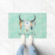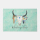 El diseño moderno de acuarela presenta un cráneo estilo Boho con plumas y cuentas sobre fondo acuático claro / dorado. Personaliza con tus detalles de la "tribu" u otro mensaje especial