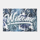 Felpudo Boho Tropical Bienvenida las hojas de la selva azu