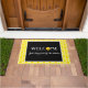 Bolas de pickleball amarillas para el amante del pickleball. Fondo blanco con albóndigas amarillas. Este gráfico de recompensas hace que una impresionante decoración doméstica sea bienvenida Pickleball Doormat con una bola de pickleball amarilla que reemplaza a la O en la bienvenida con la advertencia que se oye a menudo en el pickleball - sólo quédate fuera de la cocina. (Pero en realidad, podrías pasar el día en la cocina, Nueva Zelanda, solamente no golpees la pelota en el aire cuando estés ahí.)