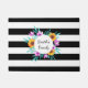 Hermoso doormat con acuarela floral corona sobre fondo rayado blanco y negro. Personalizar el texto eligiendo entre muchas fuentes maravillosas.