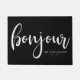 Acoja con satisfacción a sus huéspedes con este diseño moderno que ofrece la frase "bonjour" escrito en una escritura blanca moderna con nombre opcional abajo. El fondo se puede cambiar a cualquier color