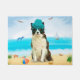 El perro lindo sentado en la playa es un regalo perfecto para alguien que ama esta raza de perro.