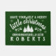 La mirada bonita del cortijo del invierno - falsa arpillera del Forest Green oscuro elegante - la obra clásica "tiene usted mismo texto de Felices pequeños Navidad" con los pinos, el acebo, los copos de nieve, y su apellido
