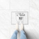 Doormat blanco y negro de la llama en un estilo incompleto con el modelo de puntos micro negro y la palabra "hola".