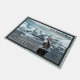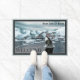 Representación digital de una ballena Bowhead (Balaena mysticetus) frente a una costa rocosa cubierta de nieve. El hielo abundante de un glaciar cercano flota en el agua. También aparece el texto "BIENVENIDA". Añade tu propio texto adicional. El Bowhead también es conocido como la ballena franca o la ballena ártica. Los cabezales para adultos son completamente negros, excepto un parche blanco manchado en la parte delantera de la mandíbula inferior, que se ha vuelto prominentemente hacia arriba. A diferencia de otras ballenas que migran a aguas del sur para alimentarse y reproducirse, pasa toda su vida en el Ártico. Los bolos, no tienen aletas dorsales y, con sus enormes cabezas triangulares, pueden crecer hasta la longitud de 60 pies (18 metros) y pesar a 100 toneladas. Se ha reportado que los bolos se rompieron en el hielo con dos pies de espesor. La cabeza de bol tiene la boca más grande de cualquier animal. Los balleneros redujeron considerablemente el número de Bowheads hasta que se instituyó una moratoria en 1966. Desde entonces se han recuperado.