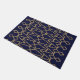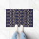 Este doormat tiene un diseño art deco de triángulos y diamantes que se parecen a bolas en azul y oro.