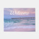Doormat de bienvenida al personalizable - Hay algo acerca del océano que es tan terapéutico. Tomé esto justo cuando el sol llegaba detrás de mí en una hermosa mañana de verano. El Navarre Beach Fishing Pier de Florida se extiende sobre el océano mientras el cielo luce colores naturales violeta y rosa. ¿Buscando más impresiones o productos? Siéntete libre de visitar mi tienda: http://www.zazzle.com/timelessmomentsphtgy Esta foto fue tomada por Jennifer White con Timeless Moments Photography. Todas las imágenes tienen derechos de autor © Timeless Moments Photography