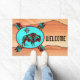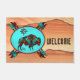 Personaliza este único "One of a Kind" (Una de las clases) Doormat de búfalo del suroeste !Cuenta con un búfalo del suroeste bajo el sol sobre un fondo turquesa, rodeado por un borde suroeste en flamencos turquesa, Naranja y negro...¡sobre un fondo desierto! Este es un diseño de arte original del artista Kerry Miller.