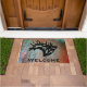 Personaliza esta singular "One of a Kind" (Mano de la puerta de toro de un tipo) Cuenta con una majestuosa silueta negra de toro...sobre fondo turquesa y cobre! Diseño Original Del Artista Kerry Miller.