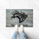 Personaliza esta singular "One of a Kind" (Mano de la puerta de toro de un tipo) Cuenta con una majestuosa silueta negra de toro de toro...en un fondo de madera gris!