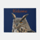 ¡Una fotografía de un hermoso búho adorna este felpudo de bienvenida! Personalizar cambiando el color de fondo o el texto para que se adapte a ti mismo!